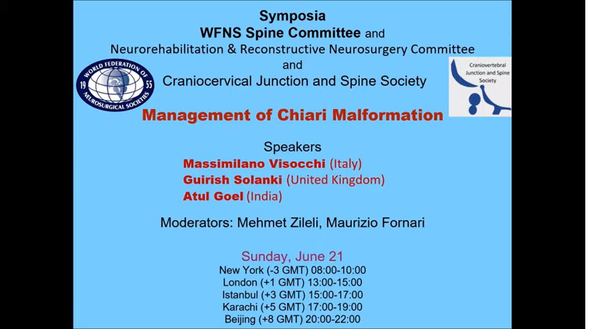 June 21, 2020 WFNS Spine Committee and Craniocervical Junction and Spine Society Symposia: Management of Chiari Malformation